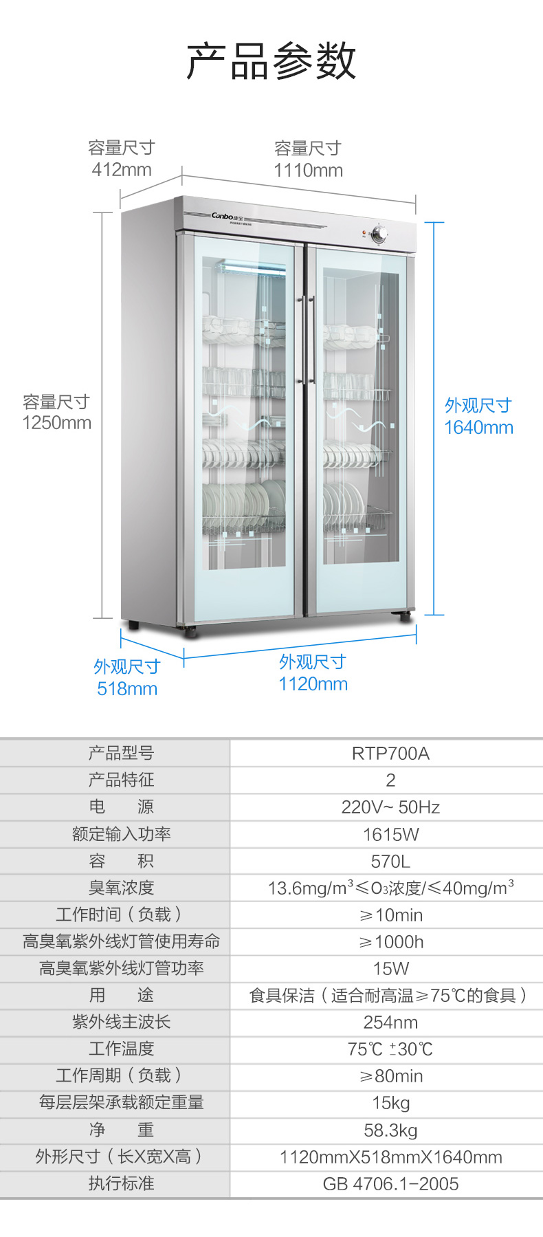 ZLY-酒店中温保洁柜1120x518x1640臭氧、紫外线双重保洁,中温烘干,可消毒密胺餐具GPR700A-2