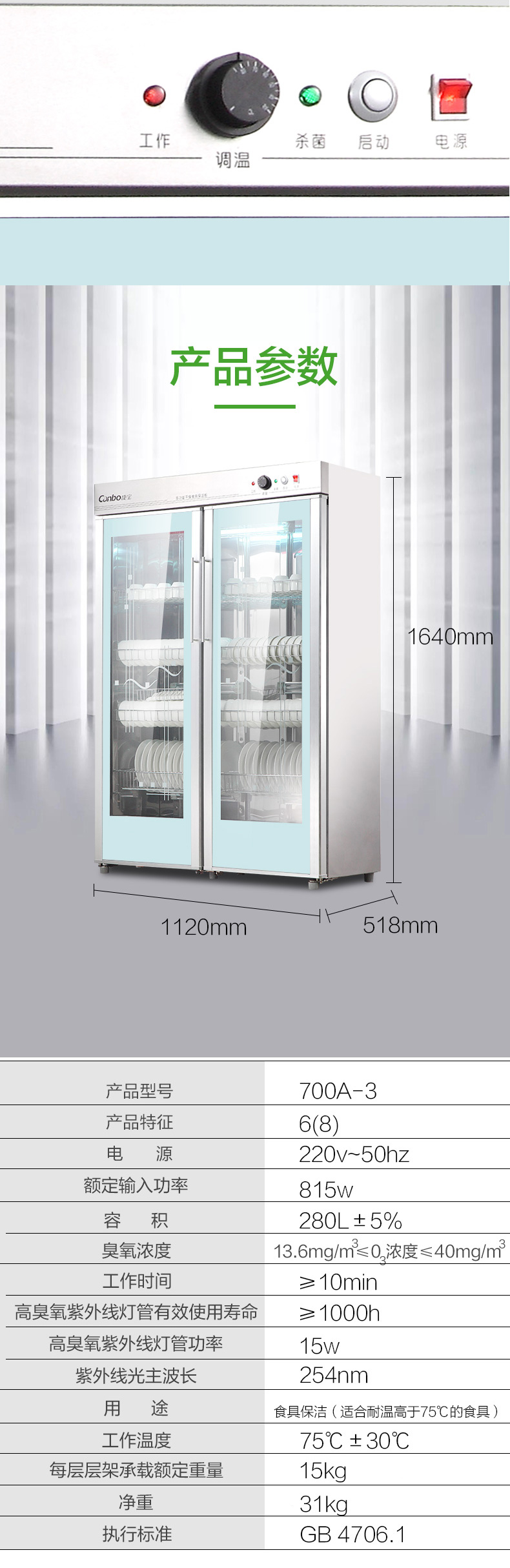 ZLY-酒店中温保洁柜1120x518x1640臭氧、紫外线双重保洁,中温烘干,可消毒密胺餐具GPR700A-3